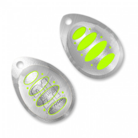 Двухсторонний, реверсивный лепесток создает объемный эффект при вращении и служит главным раздражителем для рыбы. Дужка лепестка изготовлена из упругой, устойчивой к деформации, стальной проволоки. Отверстия высверлены в, расплющенных методом ковки, краях. Тело, в форме умеренного конуса, смещает центр тяжести в голову, что, вместе с рядом горизонтальных канавок, обеспечивает остойчивость блесны в процессе проводки.