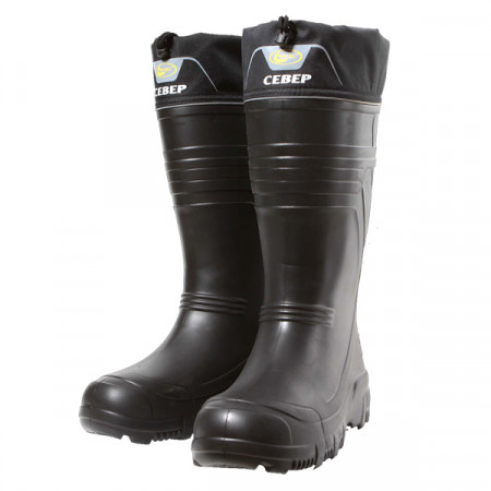 Материал ЭВА обладает низкой степенью теплоотдачи (эффект термоса), сохраняет гибкость при низких температурах. Абсолютно не пропускает влагу. Амортизационные свойства подошвы сапога обусловлены пористой структурой материала. Сапоги "СЕВЕР" разработаны с учётом пожеланий потребителей: увеличен внутренний объём изделия, для того чтобы можно было использовать более толстый вкладыш, что в свою очередь актуально для эксплуатации при более низких температурах.