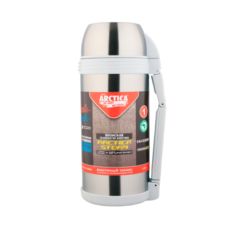 Арктика 205 - термос с широким универсальным горлом и двойной пробкой для еды и напитков. Благодаря широкому горлу термос предназначен для наполнения и первыми, и вторыми блюдами, а также удобен для мытья. Двойная широкая пробка и широкая горловина колбы придают термосу универсальность. Его можно использовать для хранения и для еды, и для напитков.